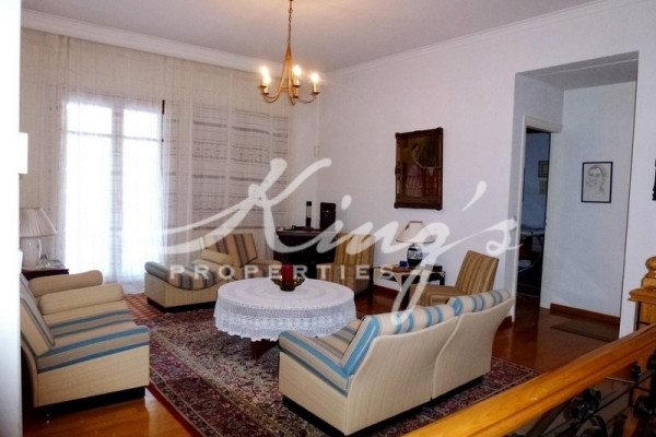DROSIA, close to transportation and market, for sale, excellent detached house of 610sqm, in a plot of 1,500sqm, quality construction, in excellent condition. In the raised ground floor (200sqm) reception area, huge living room with fireplace, dining room, wood flooring everywhere, large separate bright kitchen with daily seating area and fireplace, auxiliary storage space next to the kitchen, independent office space, wc, guest room with seating area, 1 bedroom, bathroom with bathtub, with spacious wood staircase on the 1st floor (167sqm) large open seating area, 2 bedrooms share common bathroom with bathtub and window, 1 large master ensuite bathroom with corner bathtub and window, dressing room, with exit to a large terrace, 1 small auxiliary room, wc, laundry room, with wooden staircase in the attic which serves as a storage space. Semi-basement (244sqm) reception area, huge bright playroom, it has its own independent entrance, comes out on a terrace and the garden, seating area with fireplace, open kitchen, tiles flooring, 2 bright bedrooms with shared bathroom with bathtub, storage space, boiler room, engine room, 3 closed parking spaces. White marble Dionysos, spacious levels, underfloor heating, boiler, security door, alarm system, night electricity, double glazing, large terraces, elevator, beautifully landscaped garden with grass, plane trees, automatic watering, KING`S PROPERTIES - www.kingsproperties.gr -