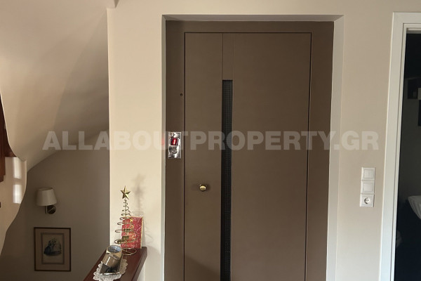 The residence is 350 sq.m. on a 300 sq.m. plot and consists of 4 levels with an internal elevator. The ground floor features a daily living room with a secondary kitchen, 1 bedroom, and 1 bathroom. The main living room with the dining area, a spacious kitchen, and 1 bathroom are also on the ground floor. The first floor offers 3 comfortable bedrooms (1 master) and 2 bathrooms. The attic space includes another sitting room, 1 bedroom, and 1 bathroom. The maisonette has large terraces and a garden, an energy-efficient fireplace, autonomous oil heating, and a solar water heater. Additionally, there are 2 garage spaces and a storage room.