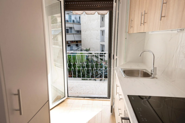 Available for rent is a renovated 3rd floor apartment of 55 sq.m. in Kypseli (Upper Kypseli - Evelpidon), at a point that combines daily comfort and excellent professional exposure. Its location is a real advantage: it is only a 5-minute walk from the Courts of the former School of Hope, which makes it an ideal choice for professional accommodation such as a law office or doctor's office, but of course also residential.