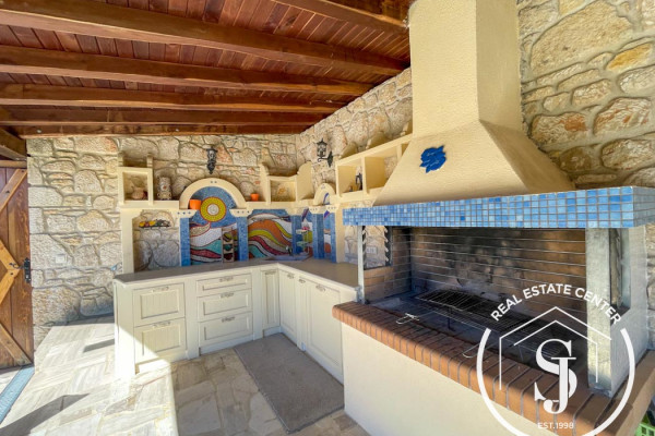 Villa For sale, floor: 2nd, in Kassandra - Kriopigi. The Villa is 120 sq.m. and it is located on a plot of 700 sq.m.. It consists of: 3 bedrooms, 3 bathrooms, 3 wc, 1 kitchens, 1 living rooms and it also has 1 parkings (1 Open). The property was built in 2014. Its heating is Personal, Air conditioning are also available, it has Aluminum frames with Double glazed windows, the energy certificate is: Not required and its floors are Tiles. The property's status is: Very good condition, Excellent condition, it is close to Transportation, Park, Sea, Seaside, School, Square, Church, Super Market, City Center, 2800 Meters from sea, it has Nature, Openness, Panoramic view. The Villa is Furnished, Mansion, Modern, it is suitable for Holiday home, Investment, Revenue source and it also has the following unique features and advantages: Window Screens, Storage, Attic, Internal staircase, Security door, BBQ, Trees. Price: €320,000. Real Estate Center Susan Jameson, contact phone: +302374063603, email: