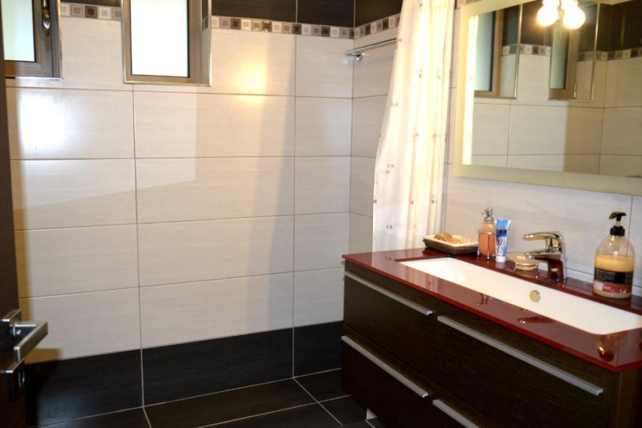 For sale 3-storey house of 350 sq.meters in Peloponnese. Semi-Keller consists of living room. Erdgeschoss consists of one bedroom, living room with kitchen, one bathroom. 1. Etage consists of 3 bedrooms, 2 bathrooms. A magnificent view of the city, the sea, the mountain, the forest opens up from the windows. There are: a fireplace, air conditioning, heating. The owners will be leaving the furniture with the sale. Building has an elevator. There is an alarm system installed. Extras included with the property: parking space, garden.
