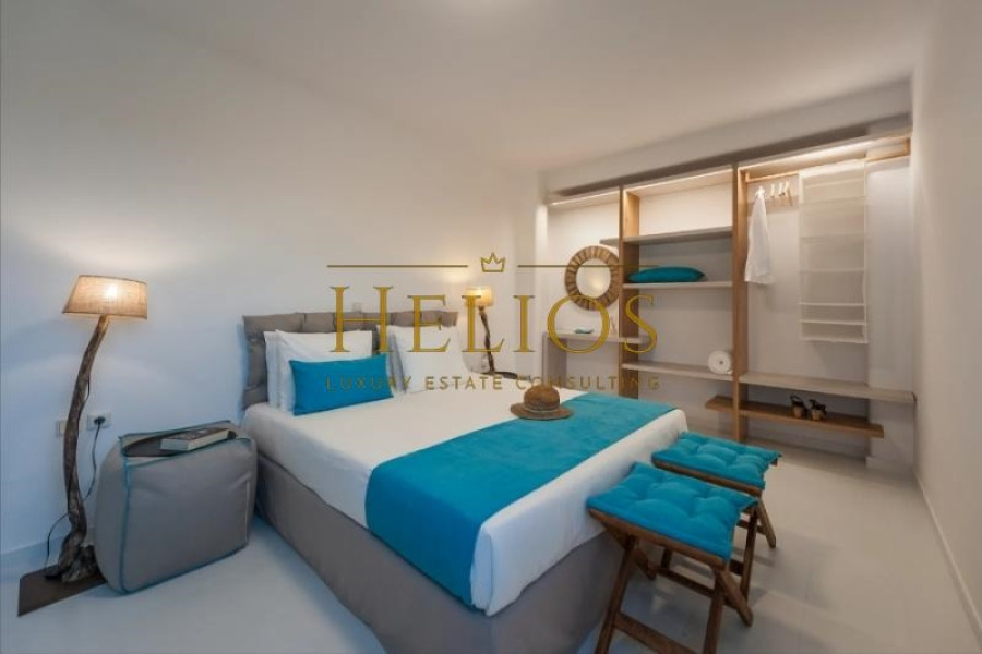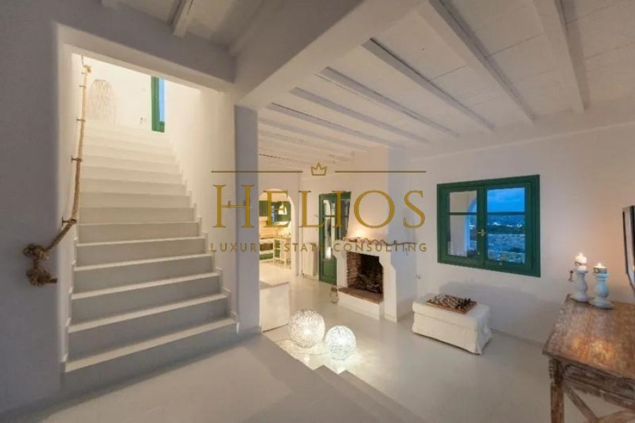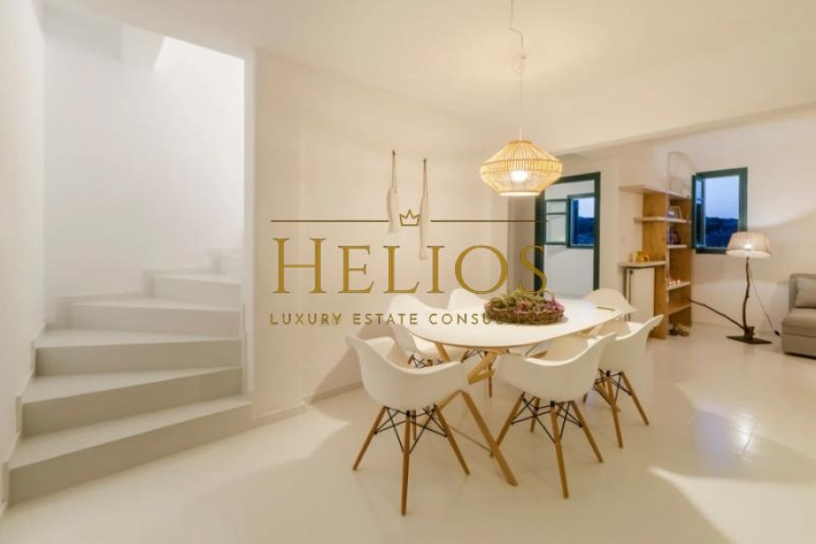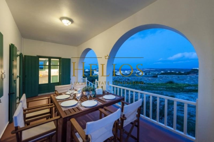 The surface terraces of about 100 sqm surround the residence. The view is unobstructed at all four points of the horizon on the beaches of this beautiful island. It is fully furnished and equipped, recently renovated and has 5 bedrooms, two living rooms, two kitchens and three bathrooms. It is possible to split into two independent houses, with separate entrance. Furthermore, it has ceiling fans, 2 double beds and 4 single beds. Also, the house has parking spaces and a pool.