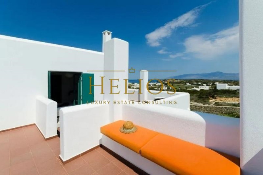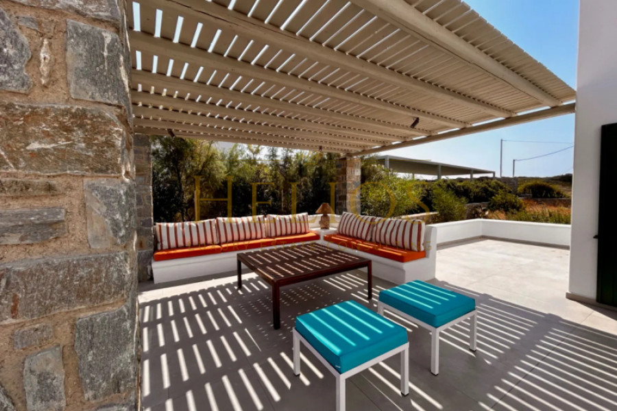 The main areas are 223 sqm, with 23 sqm of auxiliary areas. A semi-open area of about 18 sqm, overlooks the sea and Naxos.