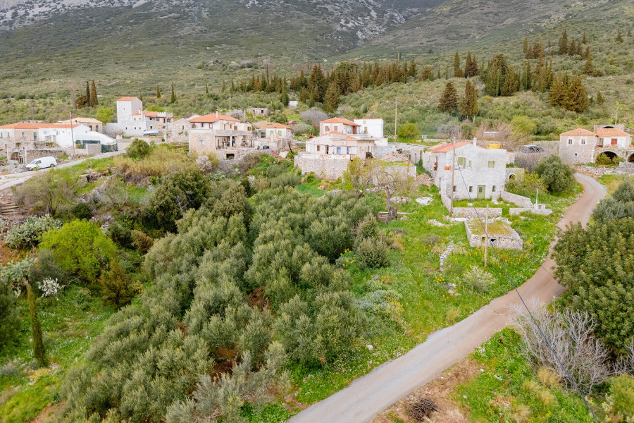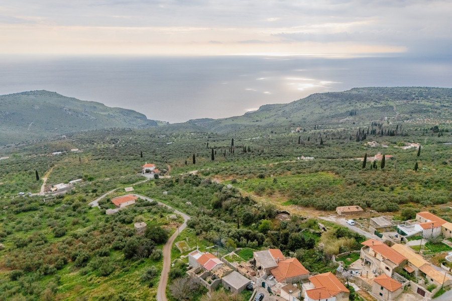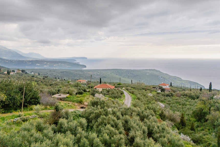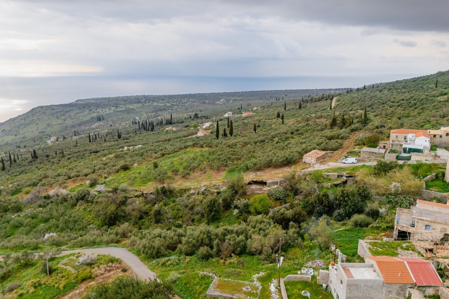 The plot enjoys lovely views of the lush green surroundings, offering a peaceful and authentic Mani landscape.