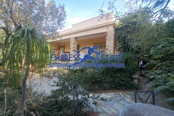 Property code: 2-1270 - Rafina Center FOR SALE SEASIDE DETACHED HOUSE 129 SQ. M. ON CORNER PLOT 643 Sq. The 93 sq m ground floor home INCLUDES COMFORTABLE LIVING AREA WITH FIREPLACE - separate kitchen, two bedrooms and a bathroom and wrap around terraces overlooking the lovely garden. AVAILABLE STUDIO 36 sq. m. in the semi-basement consisting of a single living room and open plan kitchen, a bedroom and a bathroom. It was built in 1978 with energy class B+ and has individual heating - oil, aluminum frames, tiled floors, security door, built-in wardrobes, parking, storage room, garden, fireplace, double glazing, BBQ, satellite antenna, night current, opening distance from town 200 meters distance from airport 15000 meters