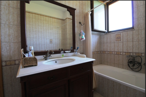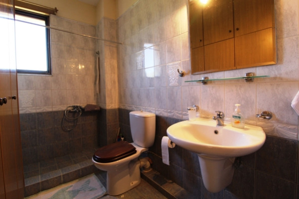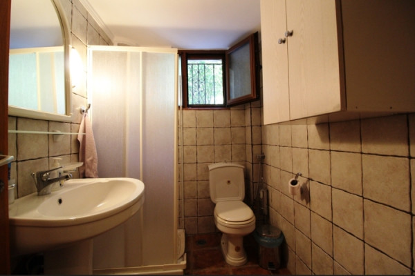 Another apartment is situated at garden level, comprising a living and kitchen area, two double bedrooms, and a bathroom. There is also a large storeroom and a boiler room. The lovely garden provides several shaded areas ideal for al fresco dining or relaxing with a good book, a covered BBQ area, and ample space for parking two cars. This property is perfect as a permanent residence or a holiday home.