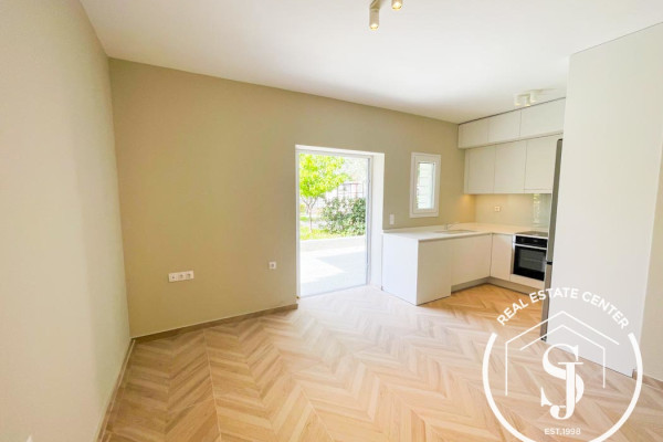 Just 50m from the beach on a cul-de-sac ideal for children to play, this fully renovated, interior designed ground floor apartment is set in a prime spot in Akrotiri, Pefkohori—walk to bars, restaurants, and shops.