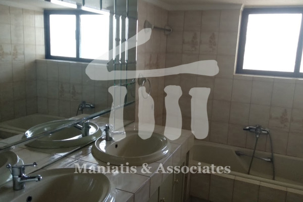 The apartment, which was renovated in 2010, has a large living-dining room with a fireplace, a kitchen with a passo, which opens onto a large balcony, two large bathrooms and three bedrooms with wooden floors and built-in wardrobes. The kitchen cabinets, wardrobes and interior doors are all handmade, made of solid wood. It is a very bright apartment, airy and neat, with several storage spaces, large balconies and comfortable covered parking in the basement. It also has independent heating with oil, triple energy solar water heater, ground floor storage, elevator, awnings, security door, night and three-phase electricity, aluminum frames with double glazing and screens. Price: 320,000. Maniatis & Associates, Contact Phone: 2104190703, email: