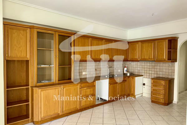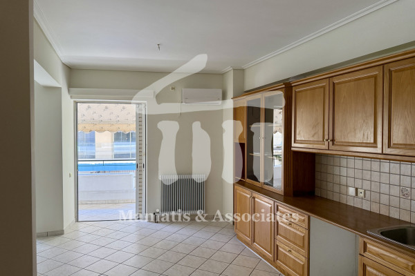 For Rent, Piraeus - Freattyda: Luxurious 143 sq.m. apartment, 1st floor, bright, built in 1997, consisting of an extremely large living room with fireplace, independent kitchen with many cabinets, 3 comfortable bedrooms with wardrobes, of which one bedroom is a master, another large bathroom and a small storage room inside the apartment. It has autonomous heating with oil, a/c in all rooms, video door entry, security door, very large verandas front and back with awnings and aluminum frames with double glazing. It has access for disabled people, and is accompanied by a parking space in the piloti. It is in an excellent location as it is located in a very quiet neighborhood 100 meters from the sea and next to a full market. Price: €1,150