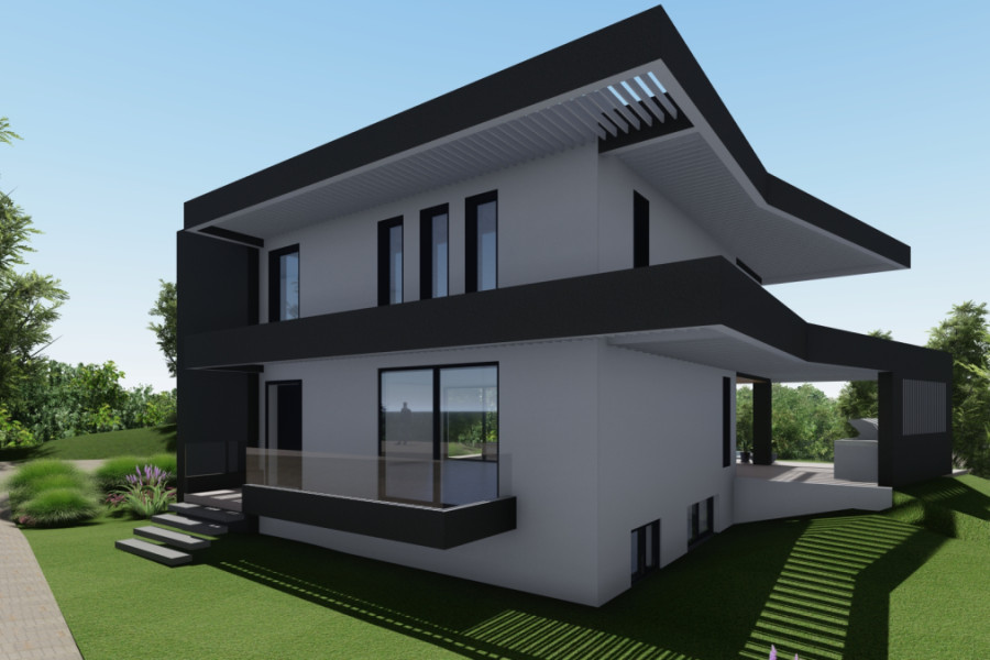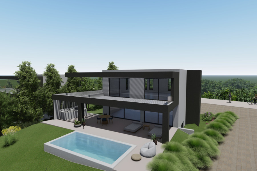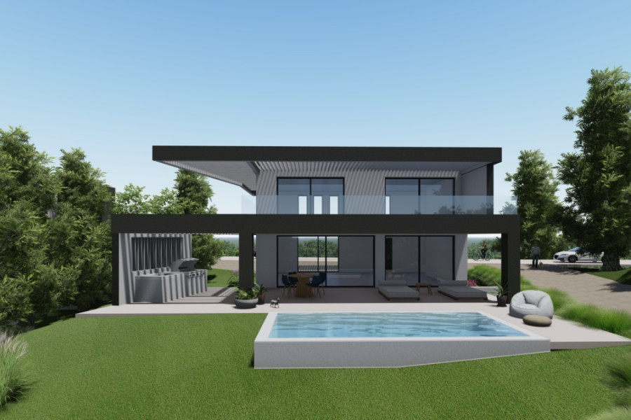 LayoutThe lower level includes two bedrooms with en-suite bathrooms and a laundry room – an ideal space for guests or children with complete privacy. The ground floor features an open-plan layout: the living room, dining room, and kitchen are combined into a single, bright space with direct access to the terrace and pool. The guest toilet and the main entrance with an internal staircase are also located here. The second floor is the main living level: two spacious bedrooms with en-suite bathrooms, a spacious outdoor terrace, and a pergola overlooking the surrounding area.