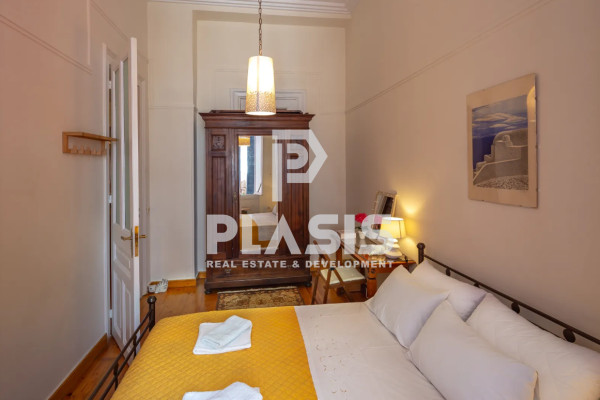 Apartment For rent, floor: 1st, in Exarchia - Neapoli - Neapoli Exarcheion. The Apartment is 130 sq.m.. It consists of: 3 bedrooms, 1 bathrooms, 1 kitchens. The property was built in 1920 and it was renovated in 2020. Its heating is Autonomous with Electricity, Air conditioning, Radiator are also available, it has Aluminum frames with Double glazed windows, the energy certificate is: F and its floors are Tiles, Wooden. The property's status is: Very good condition, it is close to Transportation, Park, Square, Public market, Super Market, Museum, University, Cafe/Restaurants, Local market. The Apartment is Painted, Furnished, With Facade, Bright, Airy, Sunny, Airy, Neoclassical, Preserved, it is suitable for Business and it also has the following unique features and advantages: Elevator, Electric Appliances, Garden, Security door, CCTV. Price: €1,600. Plasis Real Estate Syntagma, contact phone: 2103224225, email: