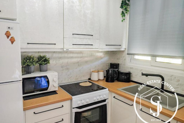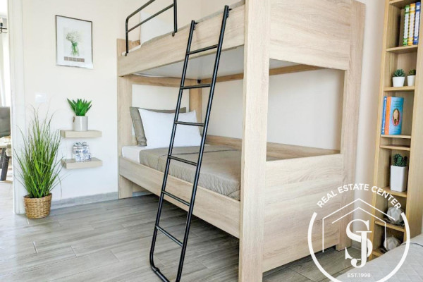 Having been completely renovated by a professional decorator, the apartment is sold fully furnished and equipped with all electrical appliances. It is located just 700 meters from the sandy beach and within walking distance of shops and other amenities.