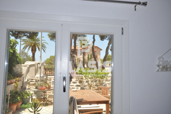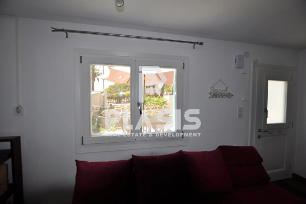 Apartment For rent, floor: Ground floor, in Syros - Poseidonia. The Apartment is 55 sq.m.. It consists of: 1 bedrooms, 1 bathrooms, 1 wc, 1 kitchens, 1 living rooms. The property was built in 1982. Its heating is Autonomous with Electricity, Air conditioning are also available, it has Synthetic frames with Double glazed windows, the energy certificate is: B and its floors are Tiles, Wooden, Granite. The property's status is: Renovated, Freshly painted, Very good condition, it is close to Transportation, Sea, Seaside, Square, Super Market, Cafe/Restaurants, 4 Km from city, 1 Km from sea, 1 Meters from village, it has Nature, Openness view and it has SouthWest orientation. The Apartment is Whole floor, Painted, Furnished, With Facade, Bright, Airy, Sunny, Lower level house, Traditional house, it is suitable for Holiday home and it also has the following unique features and advantages: Window Screens, Tents, Electric Appliances, Storage, Garden, Security door, No shared expenses, Trees, Quiet neighborhood. Price: €500. Plasis Real Estate Glyfada, contact phone: 2109601909, email: