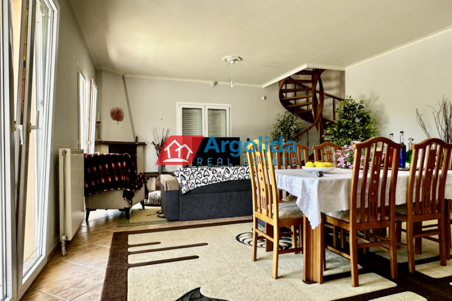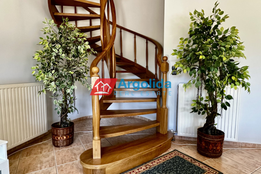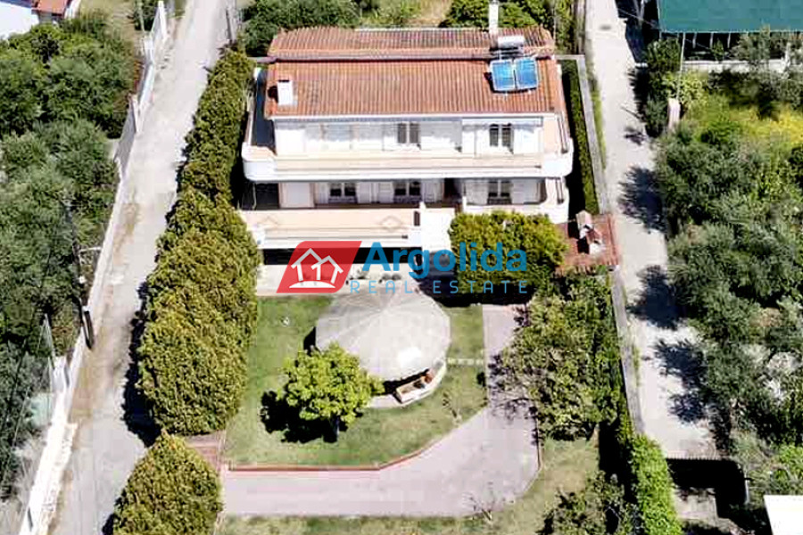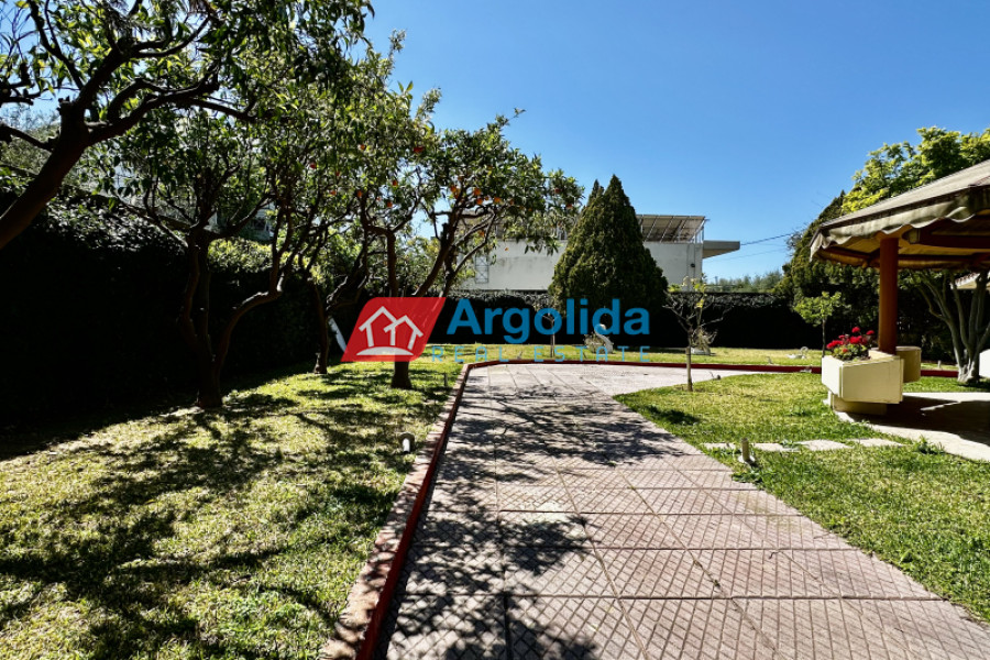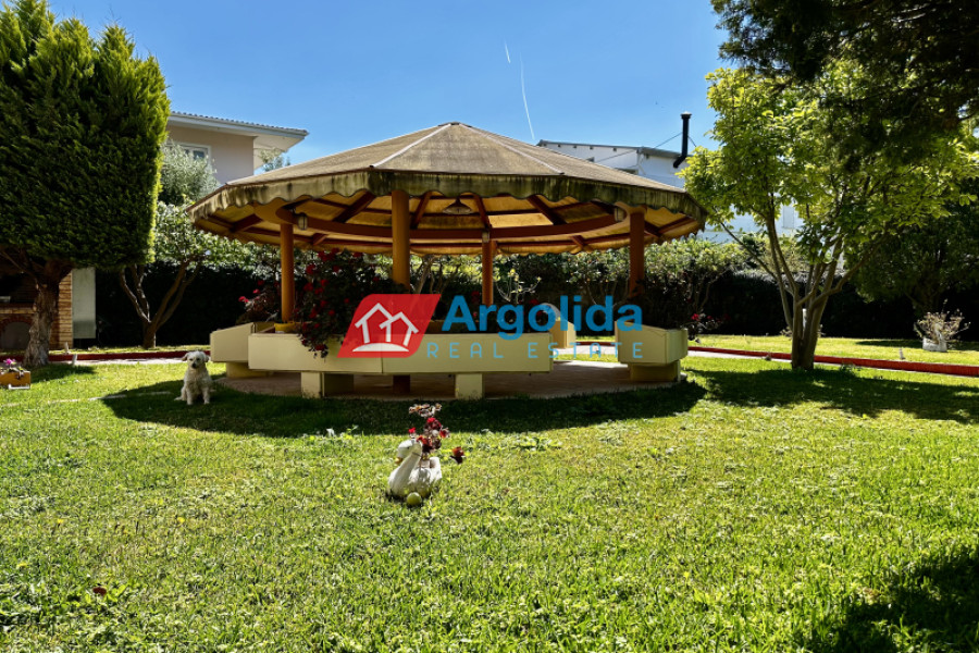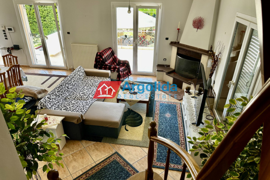 For sale a luxury detached house of 234 sq.m. on a 810 sq.m. plot, ideally located in Rio, just a short distance from the sea, perfect for permanent residence, holiday home or investment. The property is developed over three levels and offers spacious and functional living areas, high aesthetics and complete privacy within a beautifully landscaped garden with lawn, trees, a gazebo and built-in BBQ. The ground floor features a bright and spacious living room with fireplace, a separate kitchen and one bedroom with bathroom, while an internal staircase leads to the upper floor with three comfortable bedrooms, large verandas and balconies overlooking the garden, as well as an additional bathroom. The basement includes an independent apartment with two bedrooms and a kitchen, ideal for guests or rental use, along with a garage and storage areas. The house is equipped with autonomous oil heating, solar water heater, aluminum frames with double glazing and insect screens, security door, tiled floors and two parking spaces. Located in a quiet low-density area with direct access to the beach, the property offers an excellent balance of tranquility and lifestyle, while also representing a strong investment opportunity for short-term rentals due to the rapidly growing tourism development of the area. It is conveniently located close to schools, shops and public transport, with easy access to the Rio–Antirrio connection and the University of Patras, while the University Hospital is within approximately 1.5 km and a bus stop is nearby, making it an ideal location for permanent residence or holiday use.