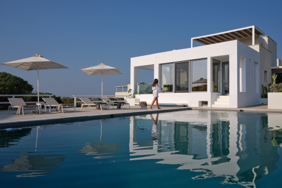 3rd house: total area: 98sqm, contains: 2 large double beds, minimal internal decoration, big veranda, living room, soundproofing, wardrobe/closet, bathroom, WC, pool: 14sqm