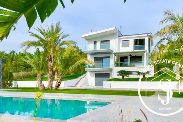 SKALA FOURKAS, Detached House 188 sq.m. in 3.200 sq.m. plot, furnished, painted, ground floor, 2 levels, county house, year of construction 1984, good condition, seaview, 4 b/r, living room, fireplace, 2 bathrooms, 1 WC, kitchen, double-sided, front facing, bright, air condition, with energy class D, with floor type tiles, with composite joinery, double glazing, pest net, internal staircase, door tv, security door, alarm, cable TV, veranda, pets allowed, garden 3.200 sq.m., bbq, distance from sea 10 m., storage room, 2 closed garages, 3 open garages, distance from village 1.000 m., distance from city 8.000 m., distance from airport 90.000 m., distance from hospital 8.000 m., with zoning housing, asphalt access, tilted inclination, price 2.000.000€, code 1472 Ace-estates,2374044191